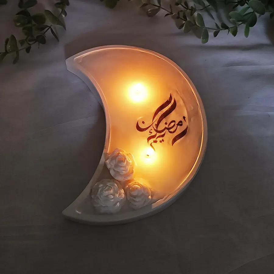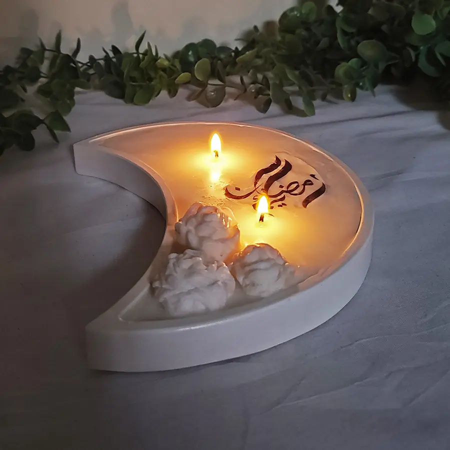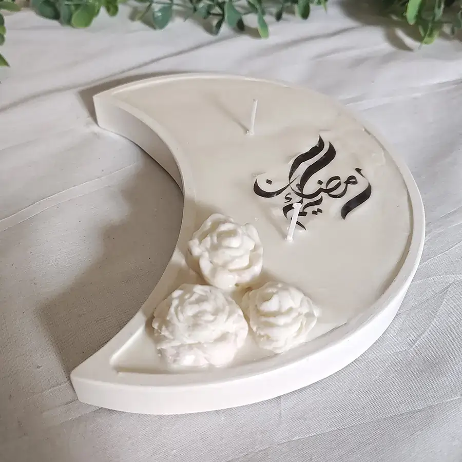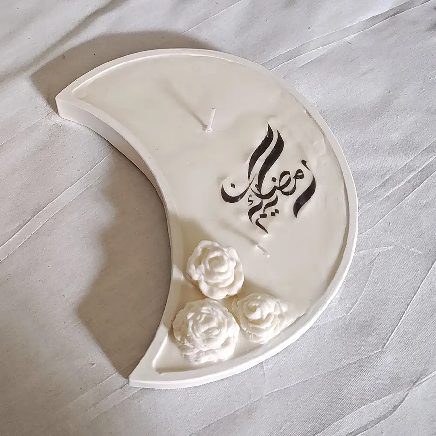 Notre Bougie Hilal est à base de cire de soja naturelle. Elle se compose du récipient à base de ciment plein de cire do soja avec écriture.