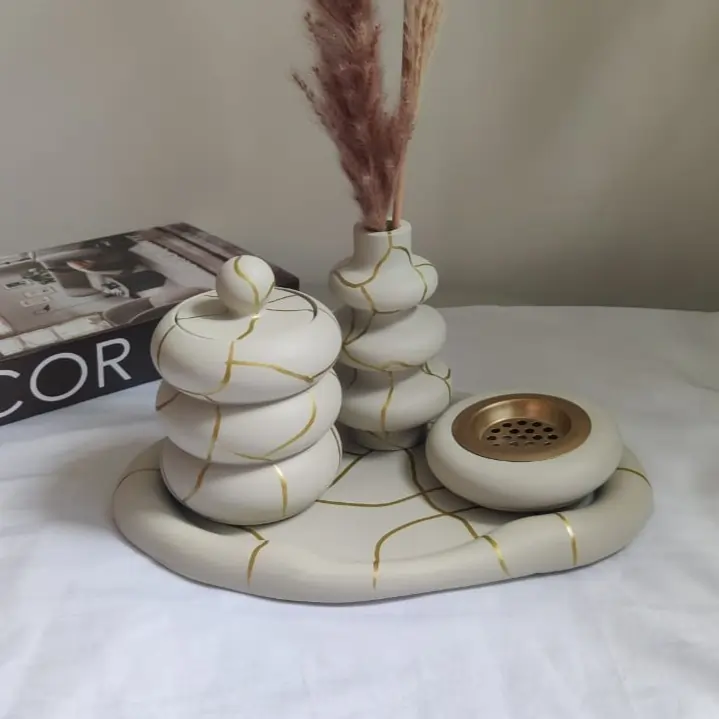 Nos vases, plateaux et boites sont faits d'un mélange de plusieurs matières (ciment, plâtre, colles spéciales...) pour vous garantir solidité et durabilité.