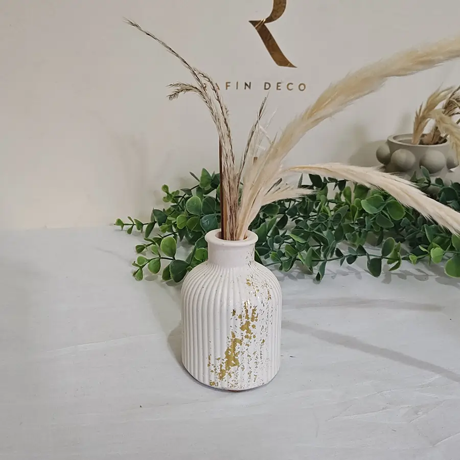 Nos vases, plateaux et boites sont faits d'un mélange de plusieurs matières (ciment, plâtre, colles spéciales...) pour vous garantir solidité et durabilité.
