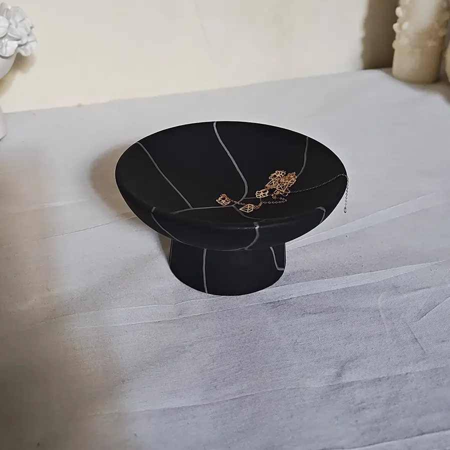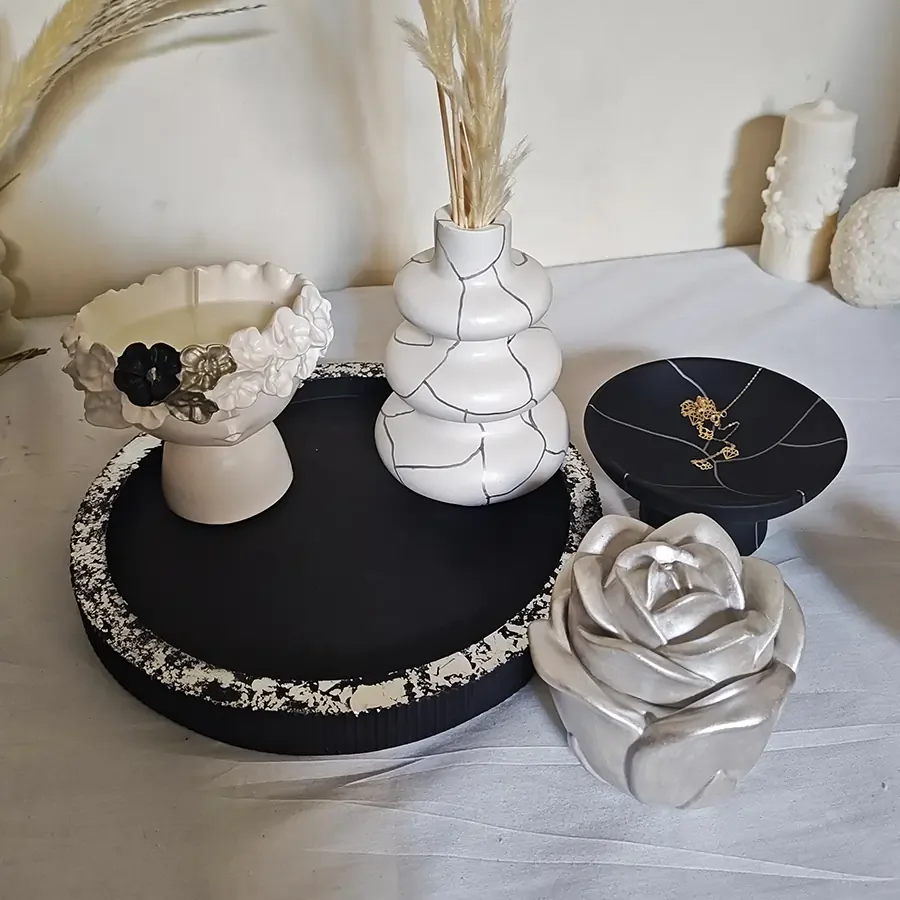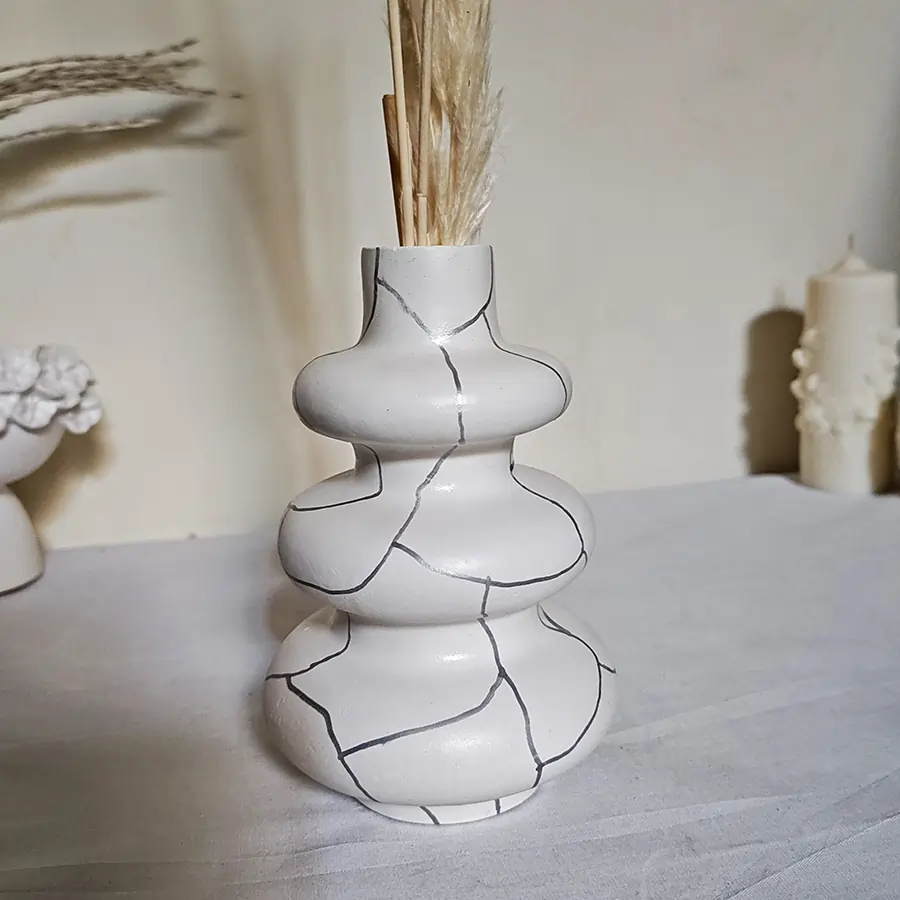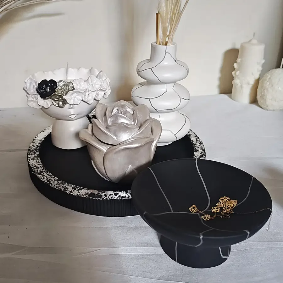 Nos vases, plateaux et boites sont faits d'un mélange de plusieurs matières (ciment, plâtre, colles spéciales...) pour vous garantir solidité et durabilité.